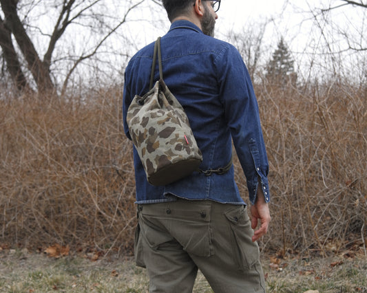 Bucket Bag in Engineer Stripe Waxed Canvas