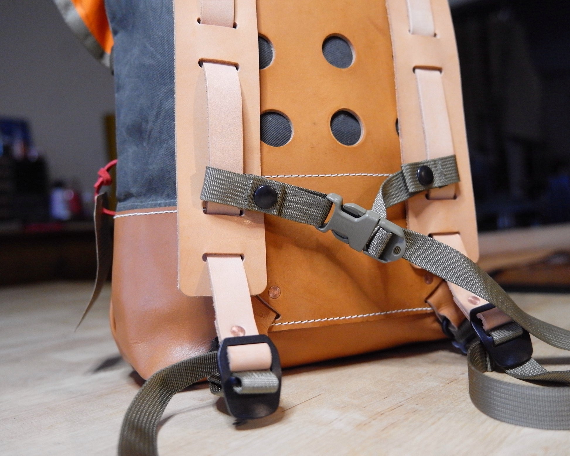 - Back pad and straps: Natural veg-tanned leather that will patina beautifully with time and use