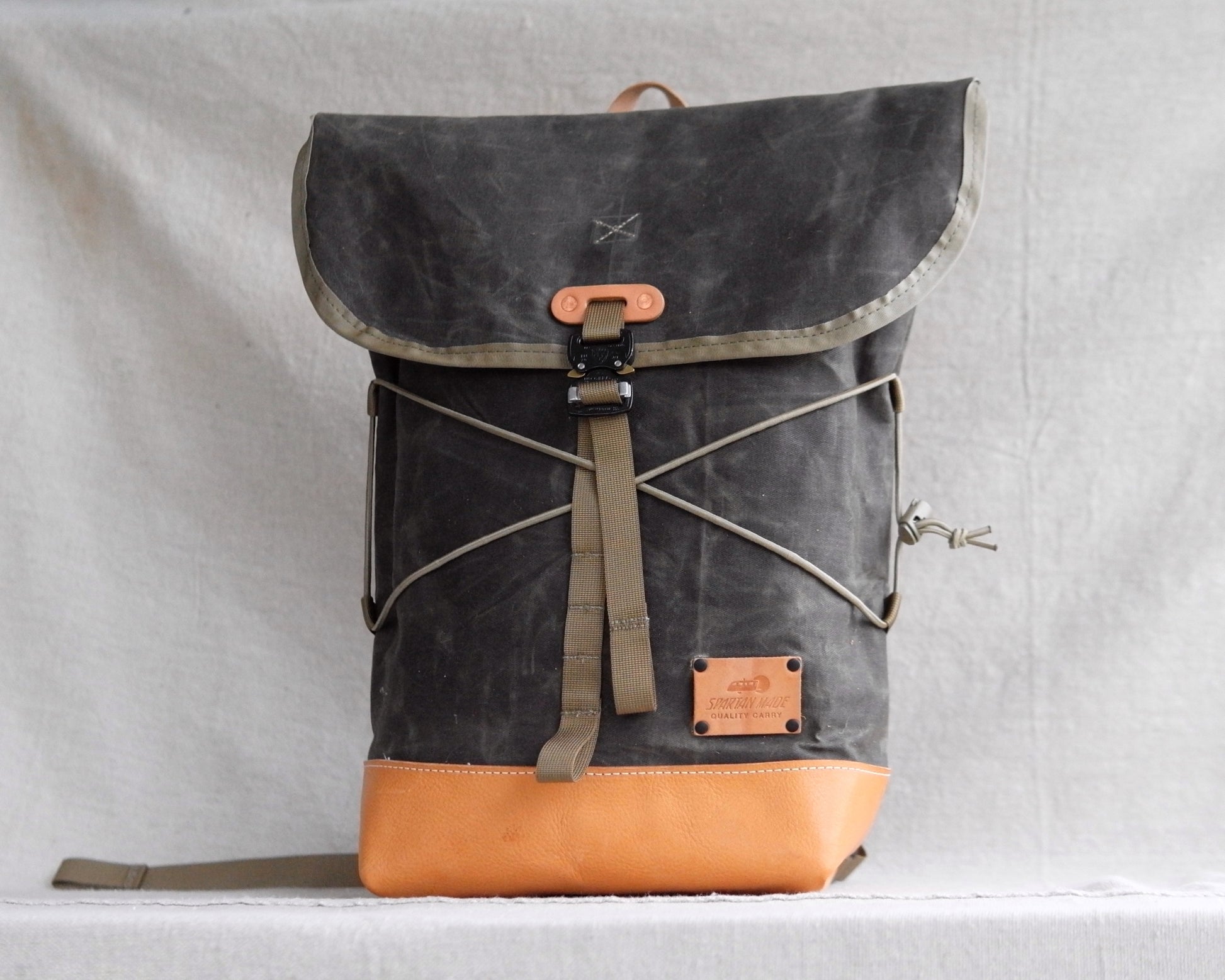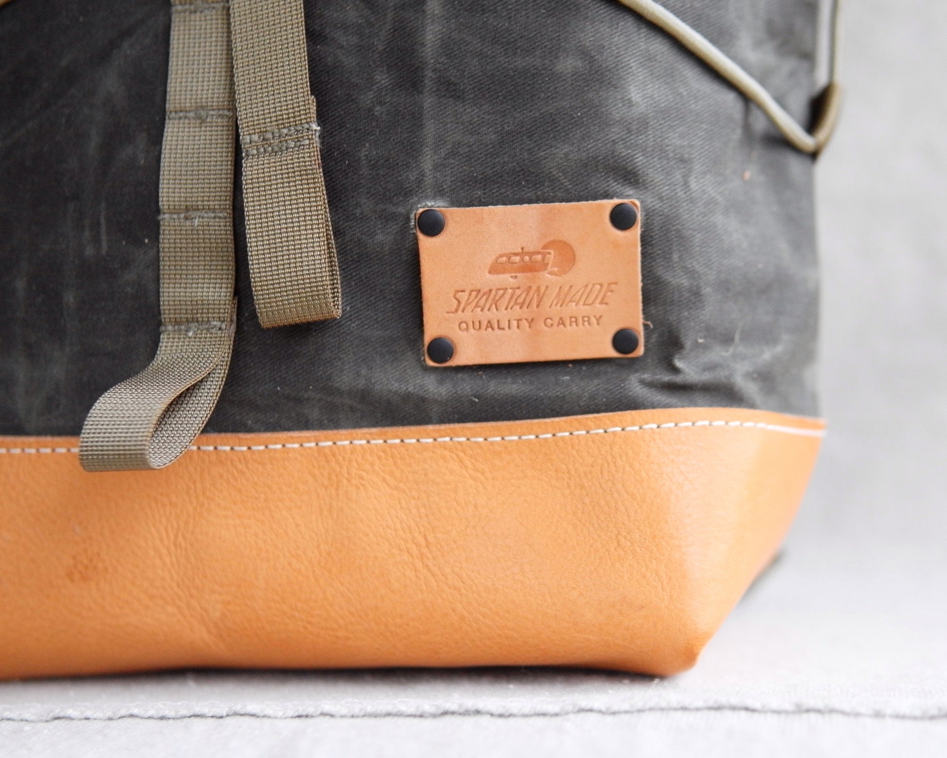 - Body: Waxed canvas in deep olive