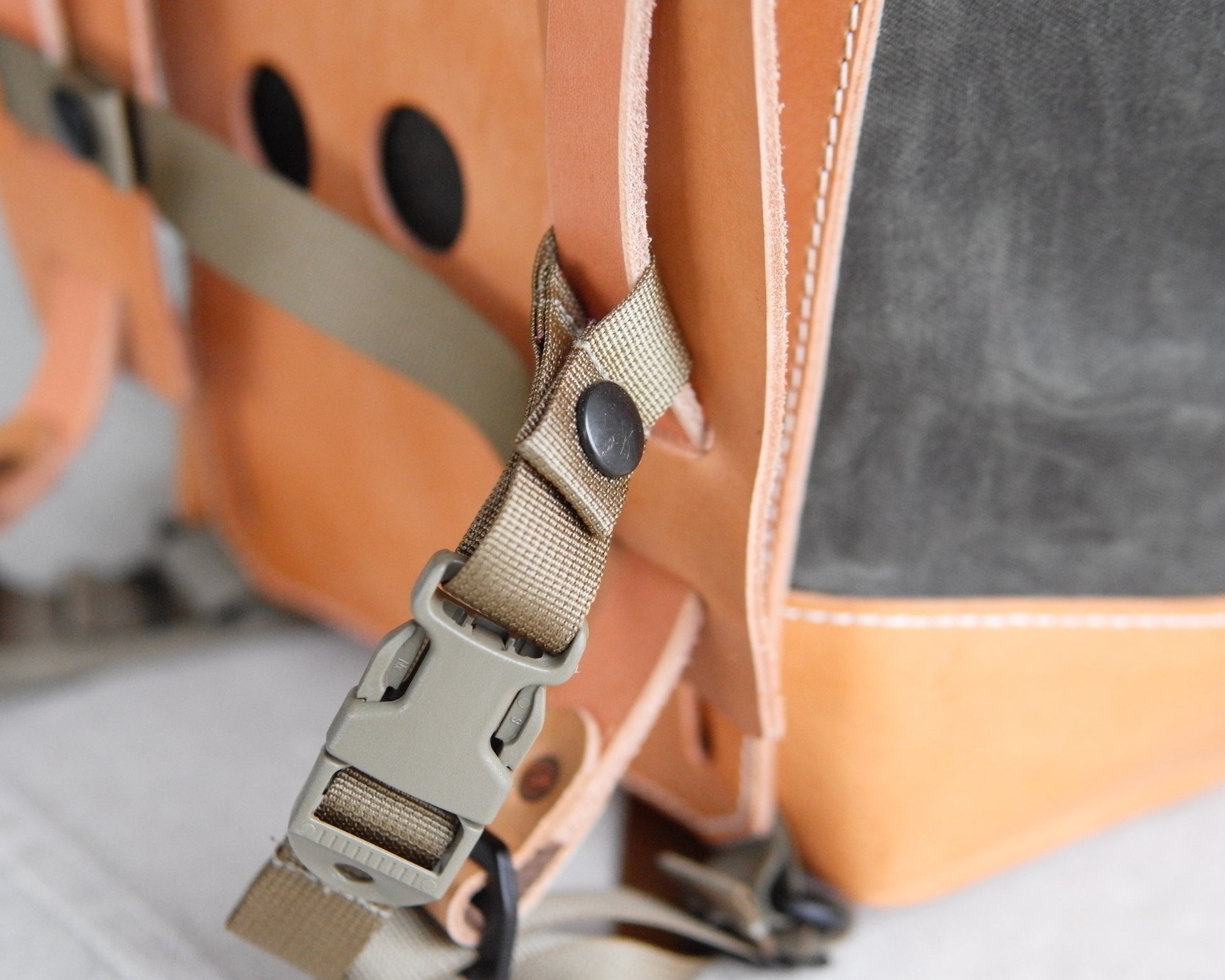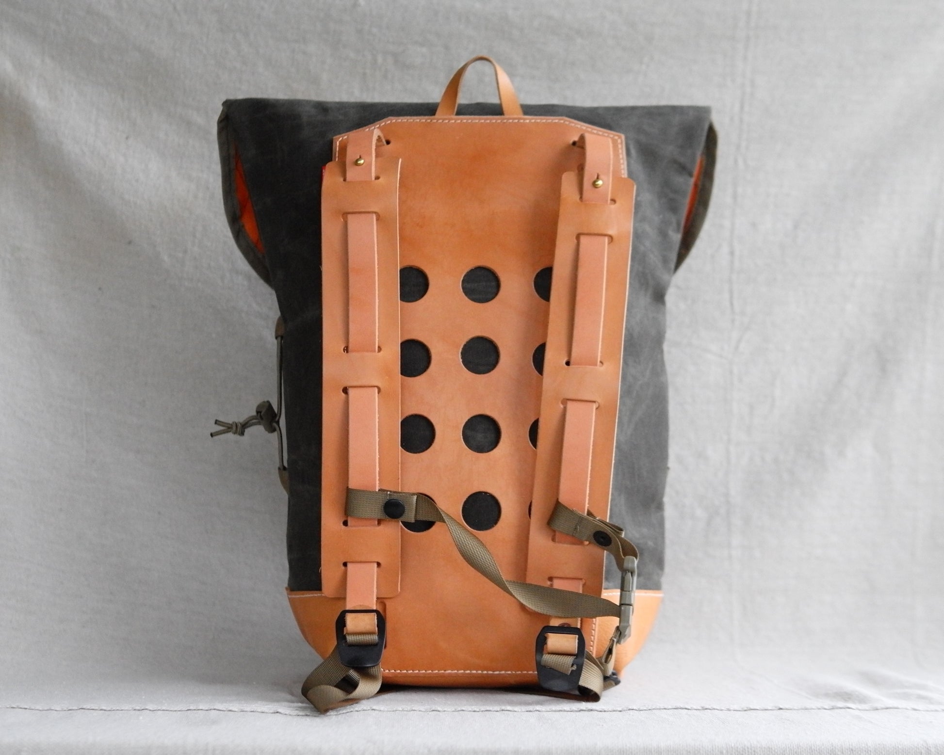 - Back pad and straps: Natural veg-tanned leather that will patina beautifully with time and use