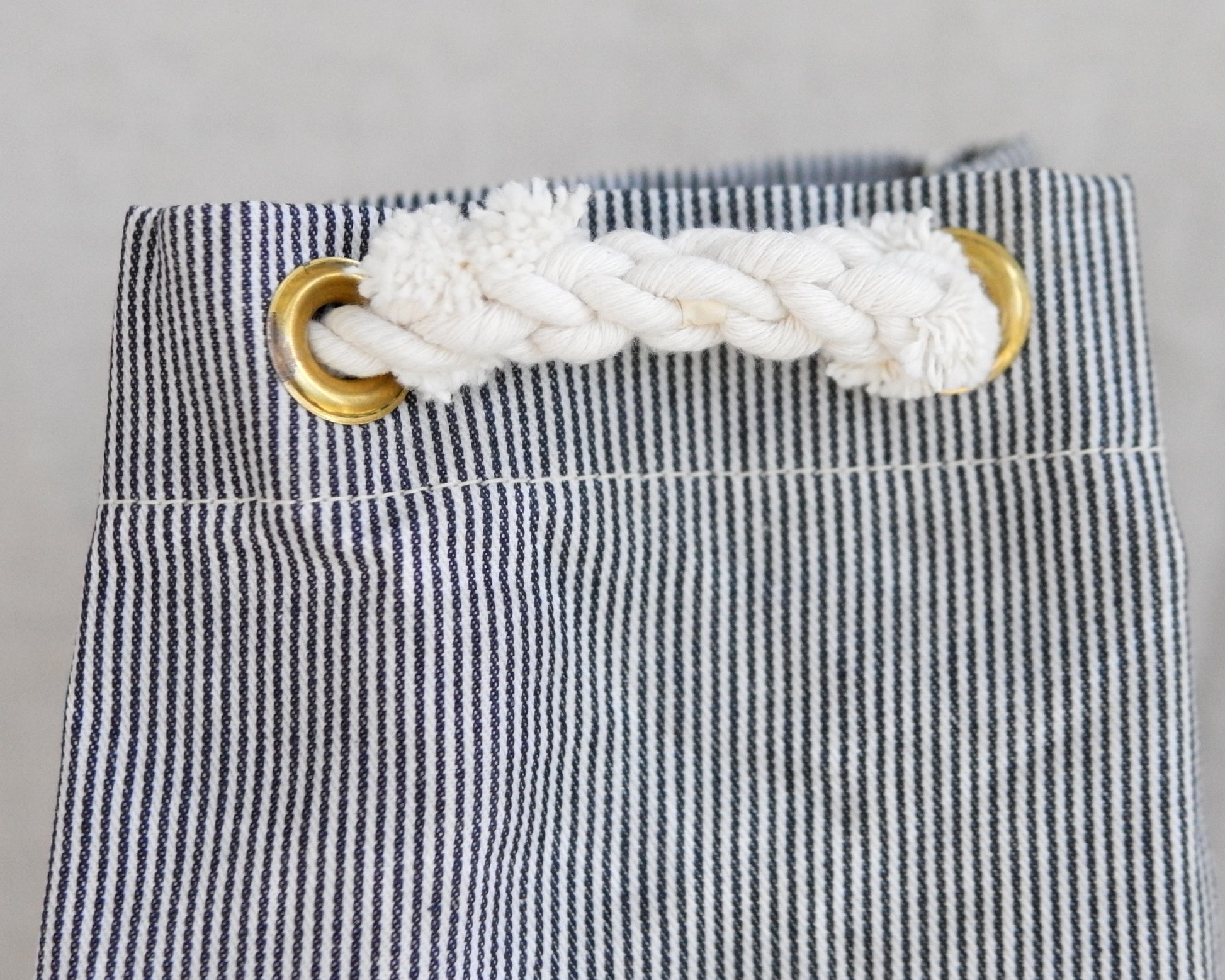 Body: Beeswaxed cotton canvas in blue and white engineer stripe