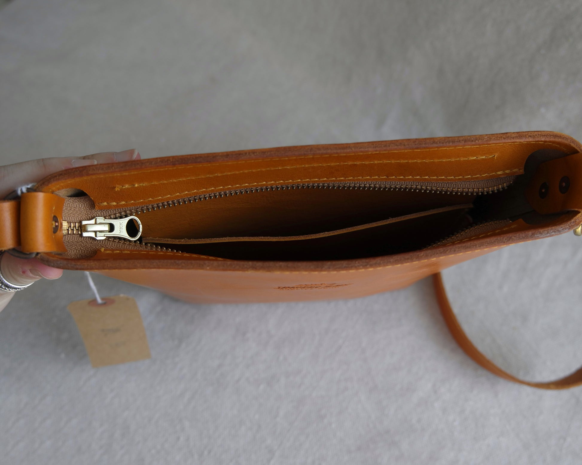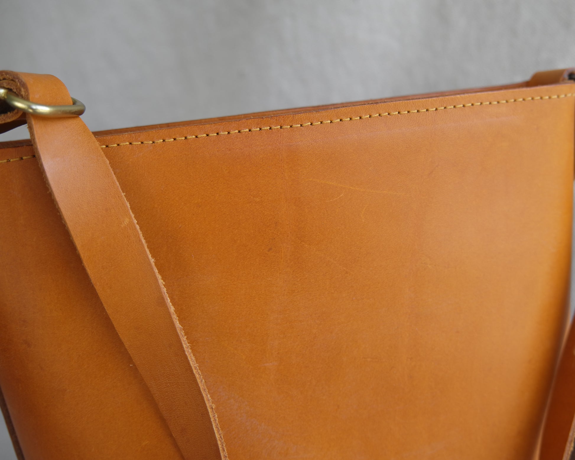 - Body: Italian veg-tanned* Walpier Buttero leather in goldenrod; this leather has a smooth look and is soft to the touch