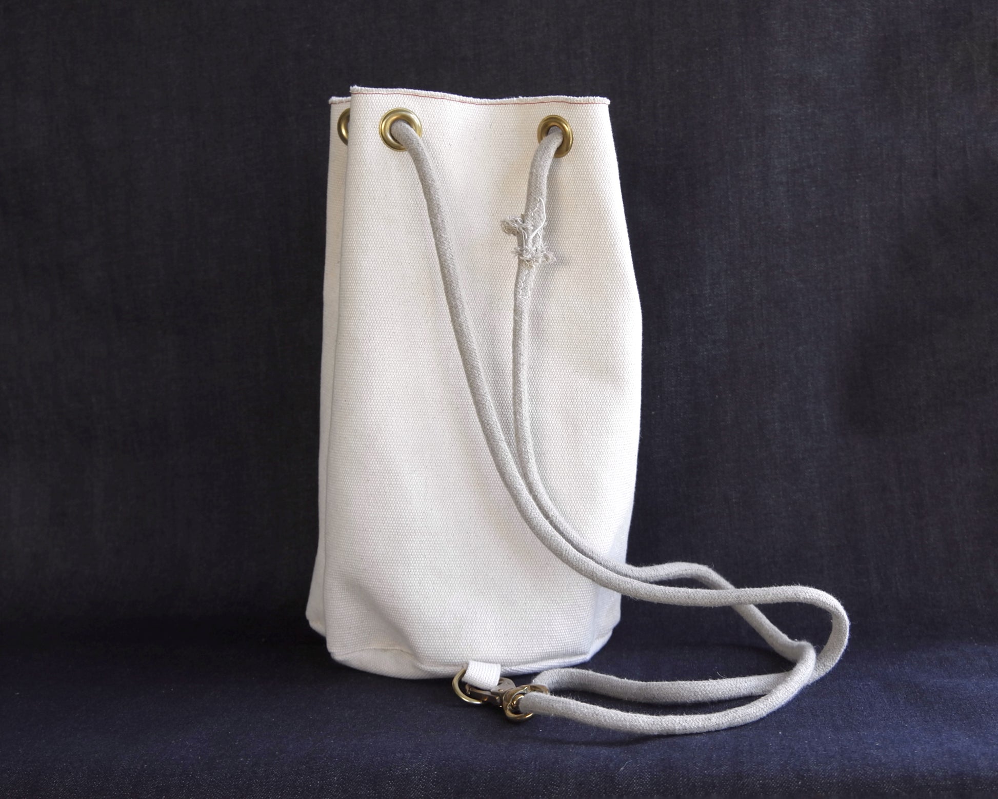 The Bucket Bag. A perfect throw-over-your-shoulder sack for spring and summer. Minimalist design for an easy grab-and-go feel - based on a classic style used by sailors. Fully lined, leather bottom, interior zipper pocket, and reclaimed climbing rope straps. Perfect for a day at the beach, a cafe, on a boat, or in the woods. I use mine as a knitting bag!
