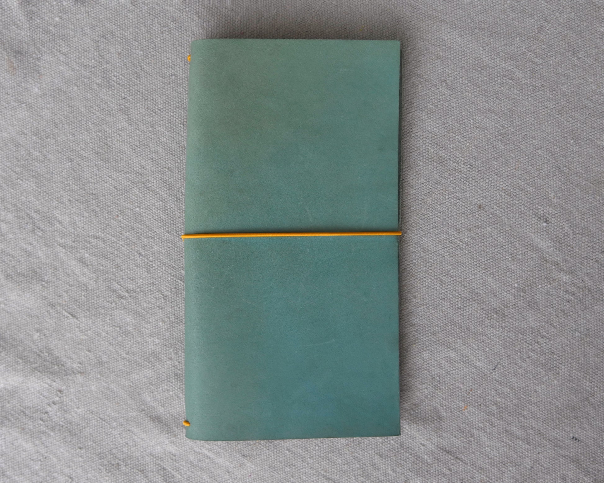 This is a Seconds item due to patina. This journal has had sun exposure and has been handled quite a bit by customers at markets, discoloring the leather. Never used, fully functional. Does not come with a sleeve.